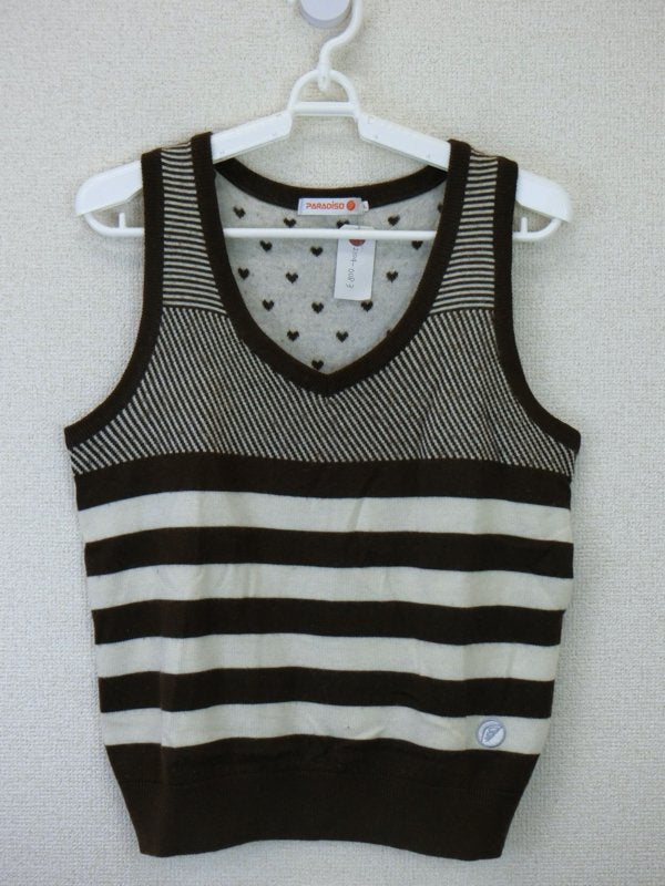 PARADISO(パラディーゾ) ニットベスト 茶白ボーダー レディース L B