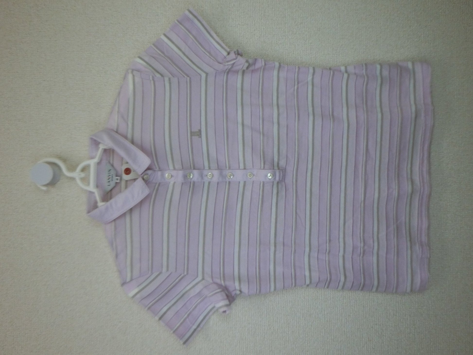 LANVIN SPORT(ランバンスポーツ) ポロシャツ 薄紫白ボーダー レディース 40 ゴルフウェア 2106-0304 中古