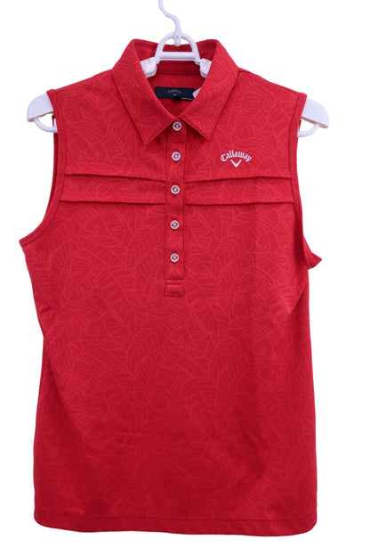 【美品】Callaway(キャロウェイ) ノースリーブポロシャツ 赤 レディース L 241-9157824 ゴルフ用品 2504-0128 中古
